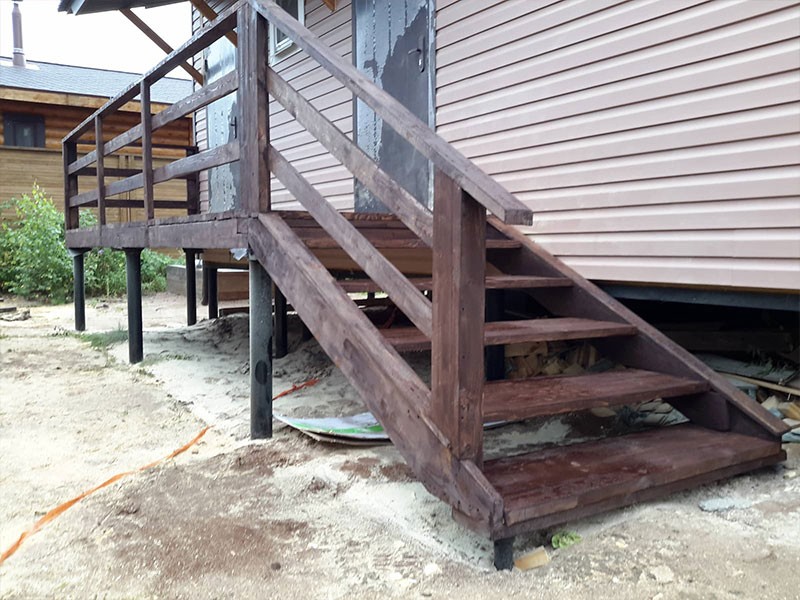 От весовой нагрузки сооружения зависит толщина и диаметр свай, который будет использоваться при сооружении крыльца. Больше вес – больше диаметр. Сваи 57, 76, 89 мм – подходящий вариант для строительства фундамента под крыльцо и лестницу.